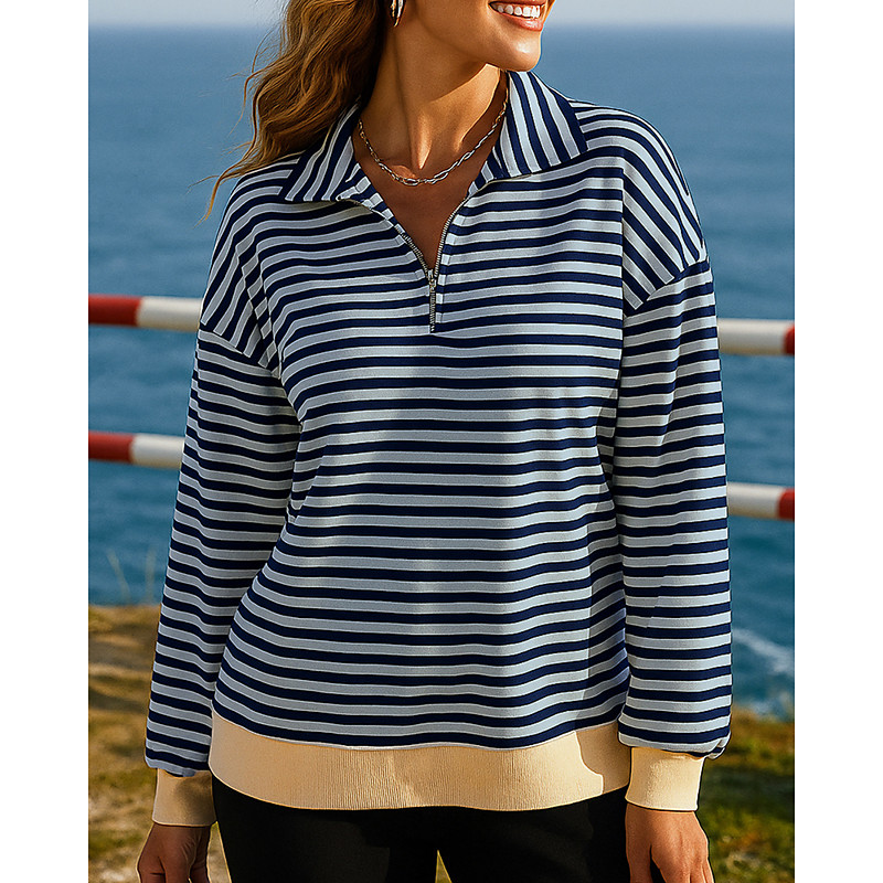 Women's Pullover Sweatshirt Casual Tops Quarter Zipper Fashion Long Sleeve Top Athleisure Fall Stripes Windproof Hiking Workout Running Sportswear Activewear Pink Red Blue
