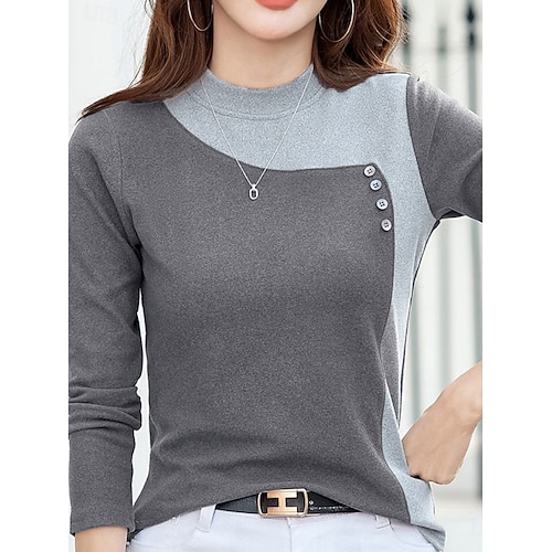 Per donna Blusa Geometrico Elegante Casual Manica Lunga Collo Alto Top Regolari Quotidiano Patchwork Nero Marrone Grigio Primavera Autunno Inverno