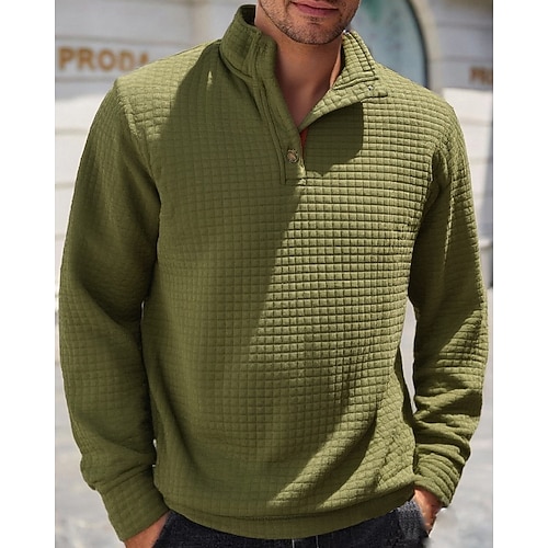 Per uomo Maglioni Felpa casual Bottoni Nido d'ape Manica Lunga Top Athleisure Tinta unita Palestra Escursionismo Allenamento abbigliamento sportivo Abbigliamento sportivo Rosso bordeaux Nero Verde
