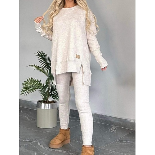 Per donna Set di Pantaloni Bolero Top Manica Lunga Girocollo Semplice Spacco sulla Coscia Moda Streetwear Casuale Quotidiano All'aperto Nero Bianco Verde militare Primavera Vestibilità comoda