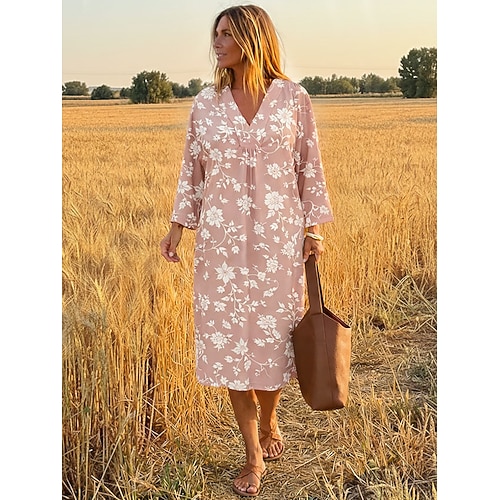 Per donna Abito Midi Vestito Casual Abito a trapezio Vacanza Casual Boho Spiaggia Feste Vestibilità comoda Floreale Grafico Manica Lunga Scollo a V Blu Giallo Rosa Viola Estate Primavera