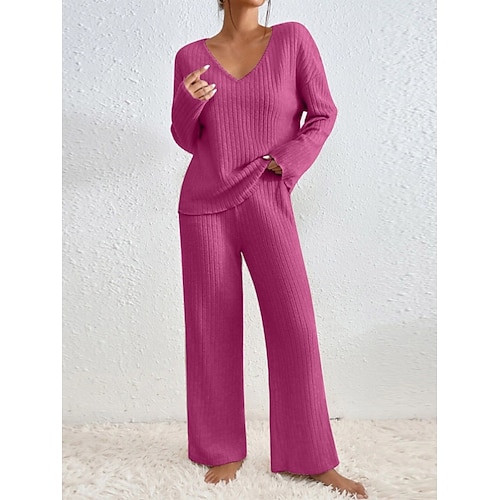 Per donna Set di Pantaloni Manica Lunga Scollo a V Tinta unica Moda Streetwear Casuale Quotidiano All'aperto Blu Nero Verde militare Primavera Vestibilità comoda