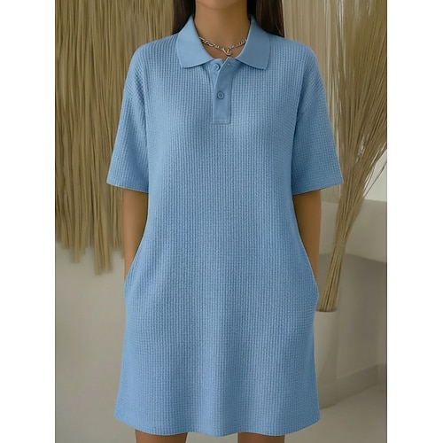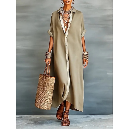 Per donna Abito maxi Abito Camicia Elegante Casual Feste Vestibilità comoda Semplice Manica Corta Colletto a Camicia Blu Nero Rosa Verde Estate Primavera