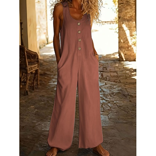 Per donna Normale Tuta Attivo Tinta unica Senza Maniche Gamba larga Collo a U Tasca Bottoni Quotidiano Vacanza Vestibilità comoda Nero Vino Marrone chiaro Estate