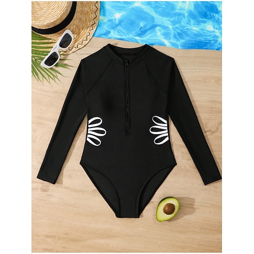 Bambini Ragazze Costume da bagno All'aperto Spiaggia Tinta unica Vacanza Moda Carino Traforato Costumi da bagno Dai 4 anni in su Estate Nero Rosa