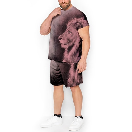Per uomo Grafico Animale Leone 2 pezzi Set di magliette Set abbinati Manica Corta Pantaloni corti Girocollo Moda Designer Confortevole All'aperto Casuale Quotidiano Stampato Primavera Estate Blu