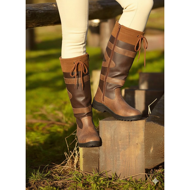 Women's Brown Faux Leather Riding Boots with Adjustable Drawstring - Tall Outdoor Equestrian Boots for Winter and Casual Wear