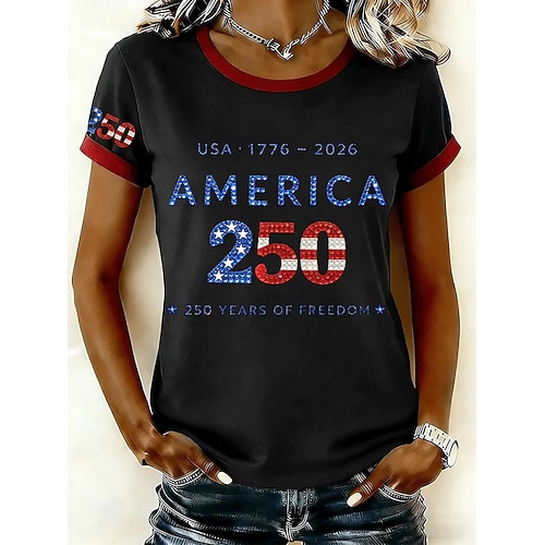 Maglietta Donna Patriottica Americana Festa dell'Indipendenza Stampa Grafica Bandiera Blocco di Colore Elegante Classica Casual Maniche Corte Girocollo Giro Regolari Tops Quotidiani Blu Nero Rosso