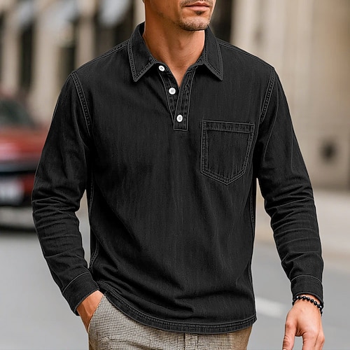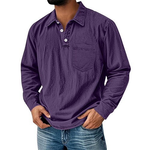 Per uomo Polo Polo da Golf Streetwear Affari Classico Manica Lunga Vintage Essenziale Tinta unica Tasca Autunno Inverno Interstagionale Vestibilità regolare Blu Rosa Nero Grigio Blu marino Viola Polo