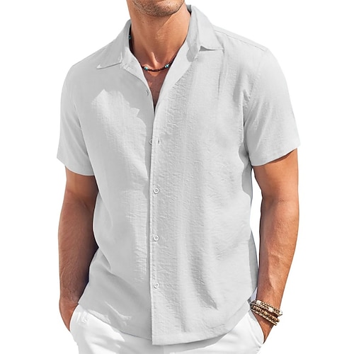 Per uomo Camicia Camicia estiva Maglietta informale Camicia da spiaggia Camicia con bottoni Nero Blu marino Verde scuro Marrone Grigio chiaro Manica corta Liscio Da mare Giornaliero Abbigliamento Di