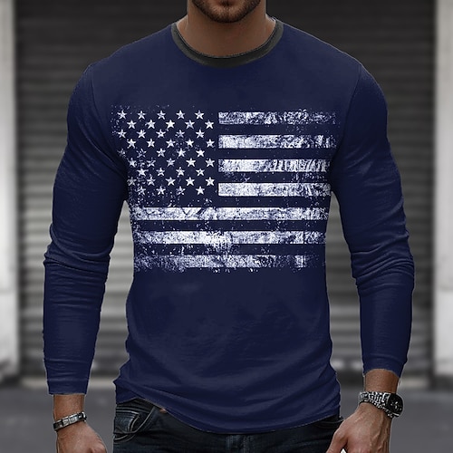 Herren Amerikanische US-Flagge T Shirt Langarm T-Shirt 3D-Druck Rundhalsausschnitt Hemd Mode Outdoor Straße Sport im Freien Schwarz Weiß Blau Sommer Frühling Bekleidung S M L XL XXL XXXL