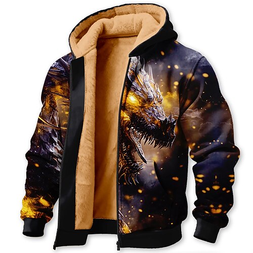 Herren Drache 3D-Druck Fleece Kapuzensweatshirt Pullover Mode Täglich Einfach Lässig Rundhalsausschnitt Outdoor Klettern Gelb Rote Purpur Reißverschluss Herbst Winter Designer S M L XL 2XL 3XL