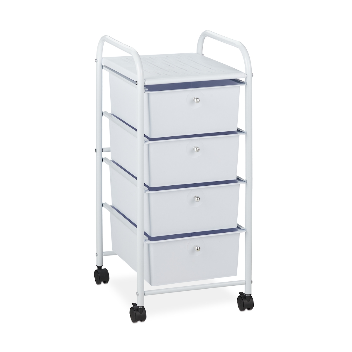 Relaxdays Badrollwagen, 4 Schubladen, Metall & Kunststoff, Rollcontainer Bad, Kosmetik, HBT: 74 x 33 x 39 cm, weiß
