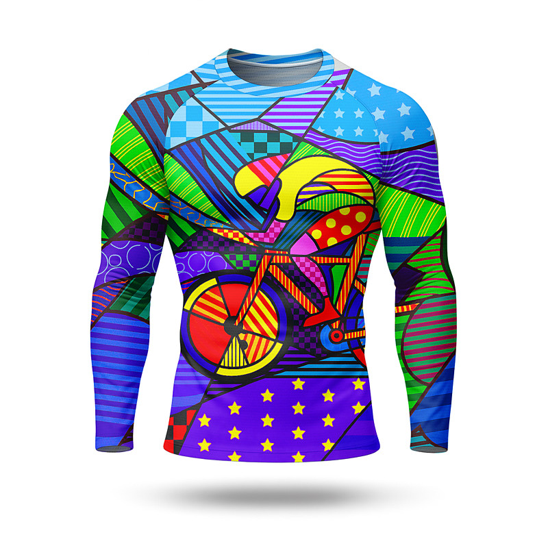 Men's Cycling Jersey Downhill Jersey Geometic Long Sleeve Bike Jersey Top with 3 Rear Pockets Quick Dry Soft Comfortable Moisture Wicking Sports Royal Blue Purple Green Clothing Apparel