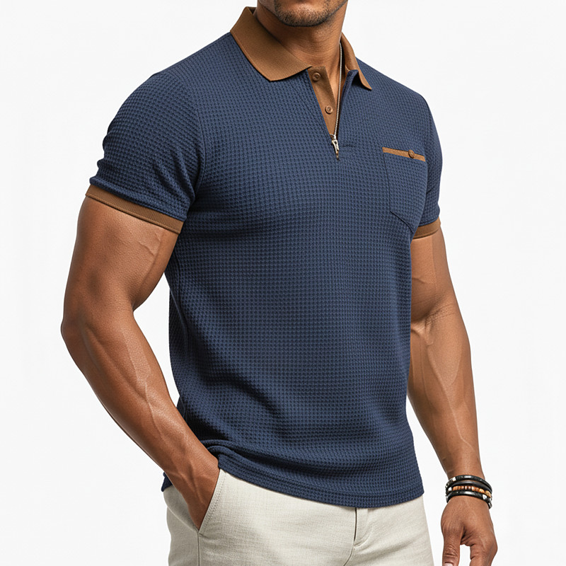 Men's Golf Shirt Waffle Knit Polo Shirt Casual Business Classic Short Sleeve Fashion Modern Solid Color Buttons Summer Spring Slim Fit White Pink Navy Blue Green Beige Light Blue Golf Shirt