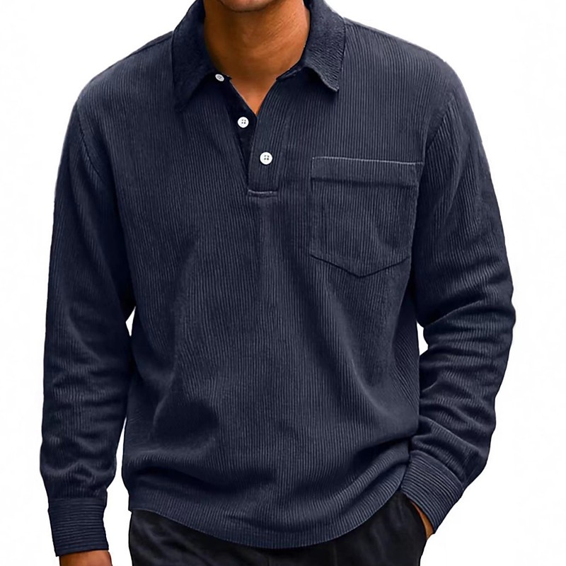Men's Polo Corduroy Shirt Casual Sports Lapel Long Sleeve Fashion Basic Color Block Color Block Buttons Fall Spring Fall Fall Winter Regular Fit Black Wine Dark Blue Gray Light Blue Polo