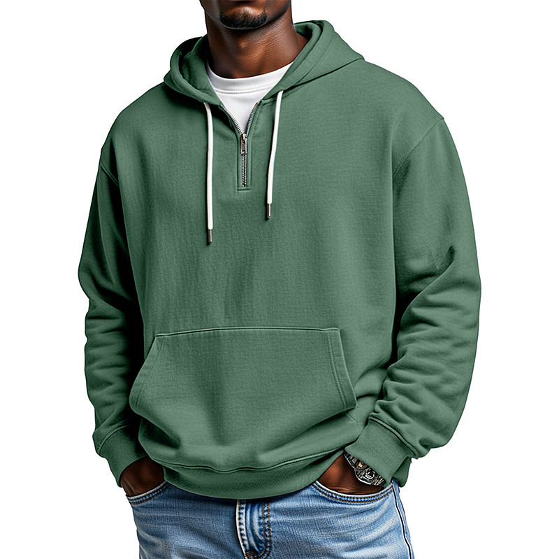 Men's Hoodie Pullover Hoodie Sweatshirt Quarter Zip Hoodie Apricot Black Light Green Red Navy Blue Hooded Plain Kangaroo Pocket Sports Outdoor Casual Daily Streetwear Cool Basic Spring Fall