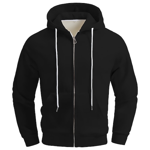 Per uomo Felpa con cappuccio Felpa con cappuccio a zip intera Giacca in Pile Felpa con cappuccio foderata in pile Nero Bianco Verde militare Blu marino Blu Reale Con Cappuccio Semplice Sport
