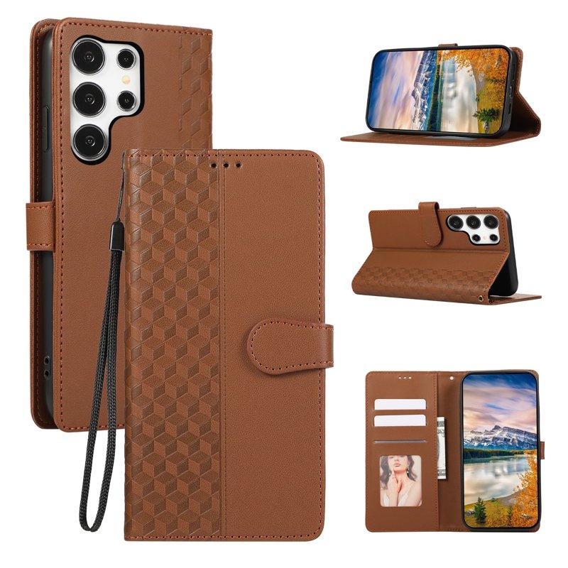 Plånboksfodral för Samsung Galaxy S26 Ultra 3D Rhombus Konstläder - Brun