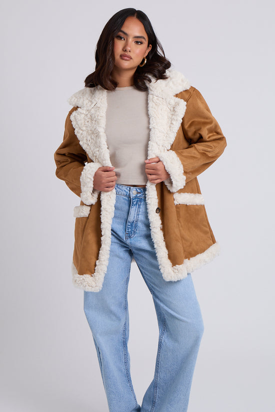 Urban Bliss Womens Brown Suede Bonded Mid Length Coat - Size 14 UK | Urban Bliss Sale | Discount Designer Brands