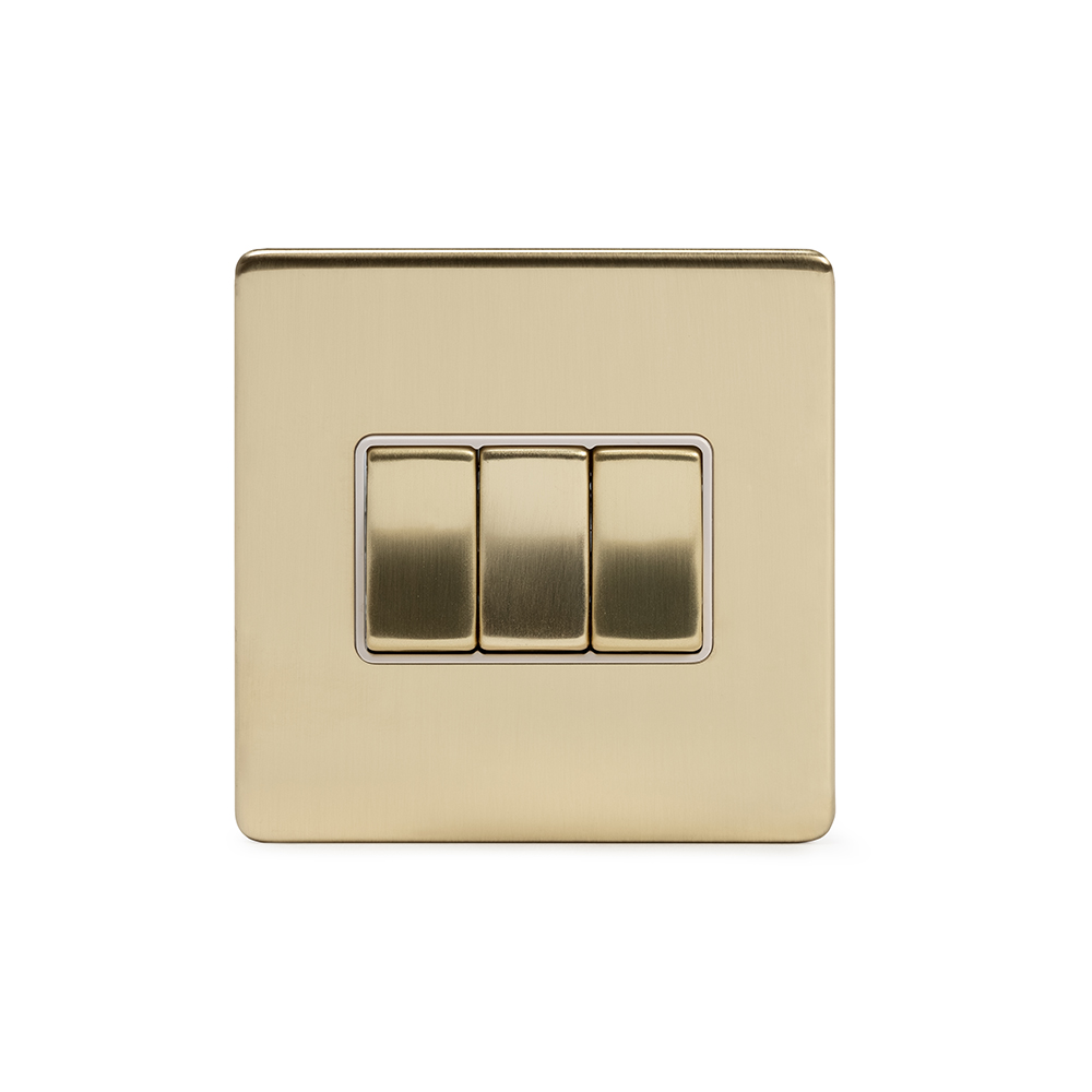 Soho Lighting Brushed Brass 10A 3 Gang 2 Way Switch Wht Ins Screwless