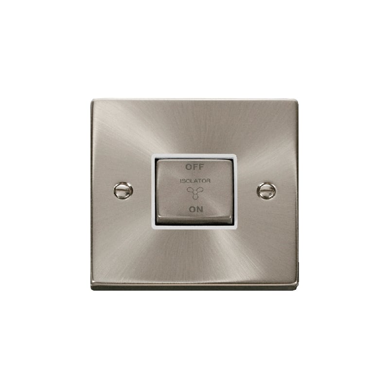 Click Deco 10A 1G 'Ingot' 3P Fan Isolation Switch Satin Chrome Insert White