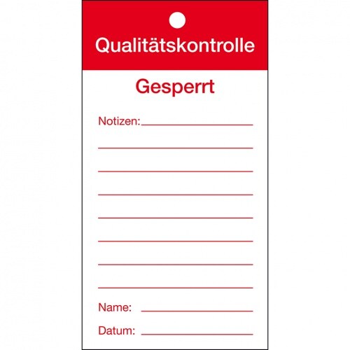 Qualitätsanhänger Qualitätskontrolle-Gesperrt, Karton, 80x150mm, 50/VE