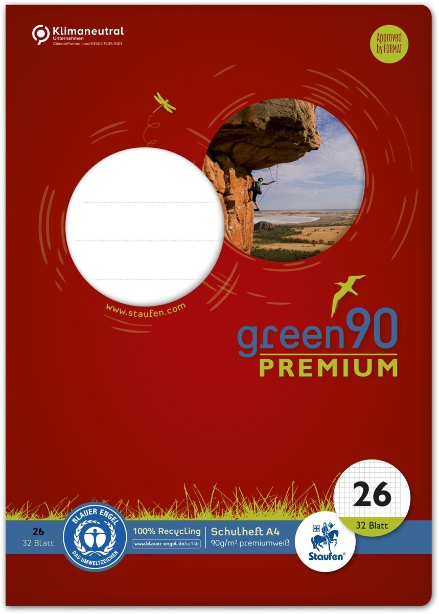 Heft - LIN26, A4, 32 Blatt, 90 g/qm, 5 mm kariert mit Rand