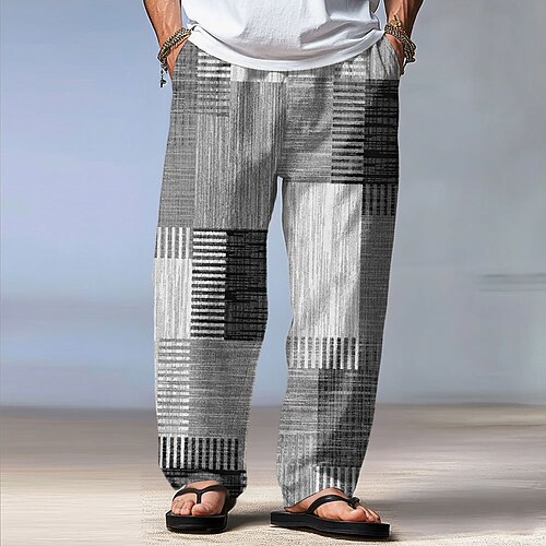 Per uomo Geometrico Plaid Patchwork Pantaloni Pantaloni Larghi Pantaloni casual Misura del girovita medio Moda Casa All'aperto Vacanza Coulisse elastica in vita Pantaloni tipo lino con tasche Estate