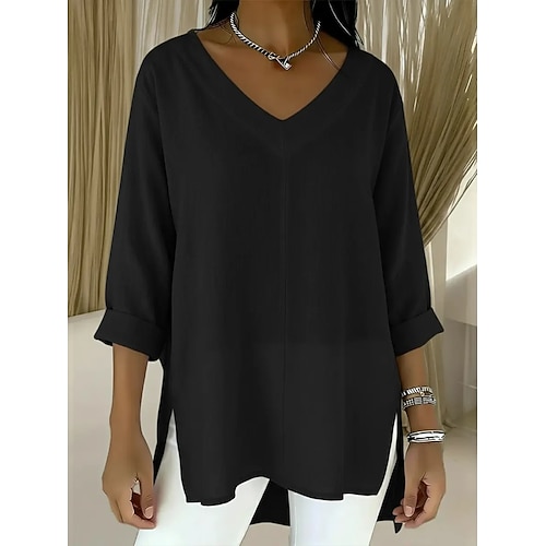 Per donna Blusa Tinta unica Elegante Essenziale Casual Manica Lunga Scollo a V Top lunghi Quotidiano Lavoro Blu Nero Bianco Rosa Rosso Estate Primavera Autunno Inverno