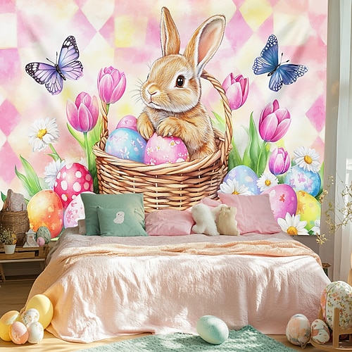 Arazzo appeso Uova Coniglio Arte murale Grande arazzo Decorazione murale Fotografia Sfondo Coperta Tenda Decorazione per casa Camera da letto Soggiorno