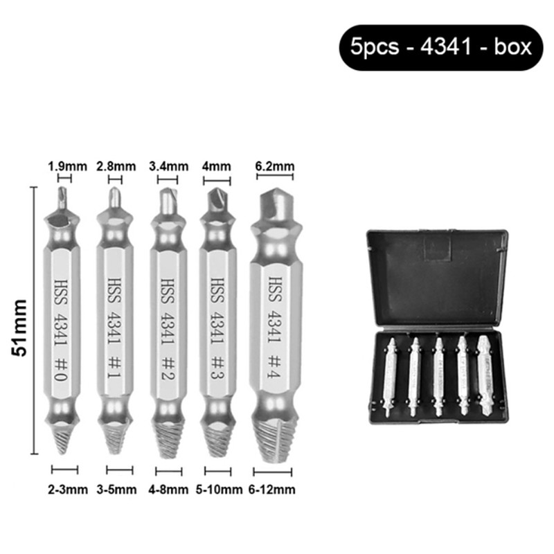 4/5/6 PCS HSS4341 Screw Extractor Nail Removal Tool Easily Take Out Broken Screw Bolt Set Double Head Extractor Demolition Tools