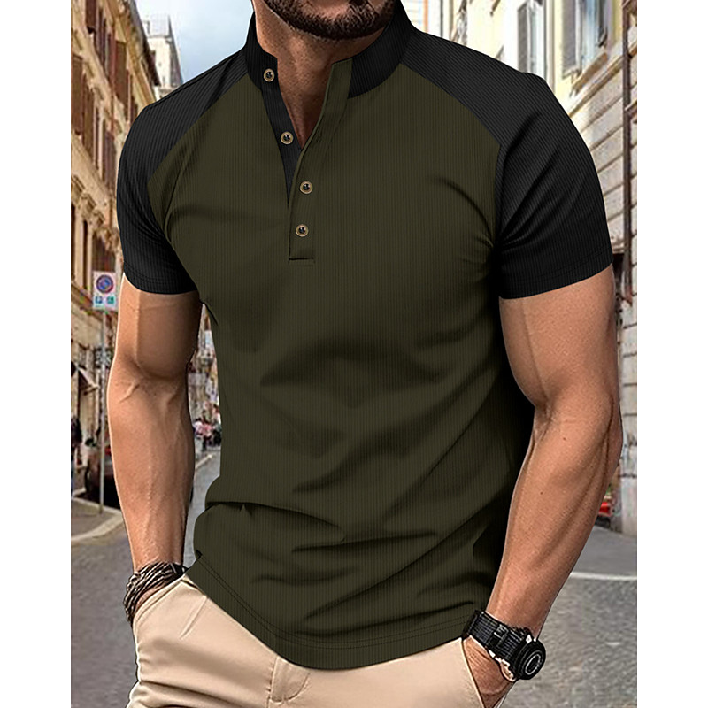Men's Golf Shirt Golf Polos Shirts Work Casual Stand Collar Short Sleeve Basic Modern Color Block Patchwork Buttons Spring Summer Regular Fit Wine Black White Pink Navy Blue Green Golf Shirt