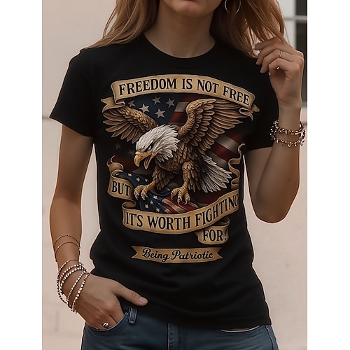Maglietta Donna Patriottica Americana Festa dell'Indipendenza Stampa Grafica Bandiera Americana Vintage Elegante Classica Maniche Corte Girocollo Giro Regolari Tops Quotidiani Weekend Nero Verde
