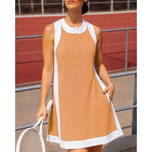 Per donna Tinta unita Abito da tennis con pantaloncini e reggiseno incorporati Abito sportivo Senza Maniche Cerniera Spacco Traspirante Tennis Pickleball Il giro Vestito Bianco Blu marino scuro