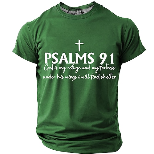 T-Shirt Uomo Bibbia Salmi 91 Croce Dio è il mio rifugio e la mia fortezza sotto le sue ali troverò riparo Versetto Biblico Maglietta Grafica Collo a Giro Fit Regolare Chiesa Designer Abbigliamento