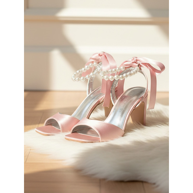 Women's Elegant Pink Satin Peep Toe High Heel Sandals with Ankle Strap and Lace Inlay – Graceful Wedding Party Shoes for Brides and Formal Events