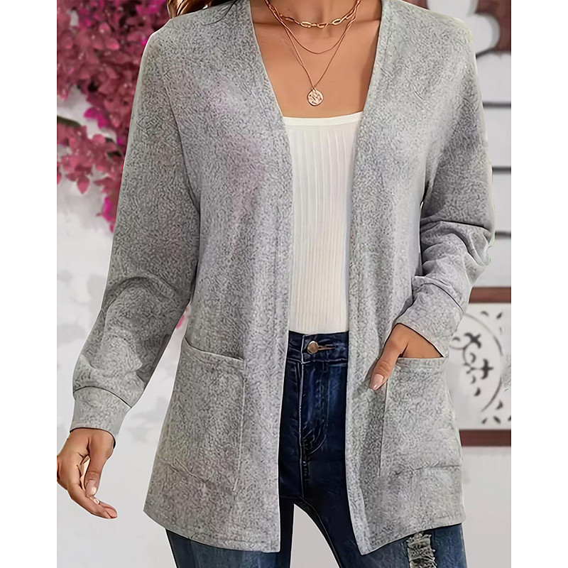 Women's Sweater Cardigan Elegant Streetwear Casual Solid Color V Neck Pocket Knitted Long Sleeve Long Tops Knit Daily Holiday Going out Black Pink Fall Winter