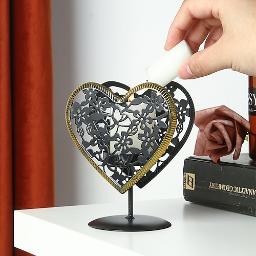 1 candeliere in metallo scavato a forma di cuore con decorazione da tavolo in stile retrò europeo, adatto per la decorazione della sala da pranzo di casa
