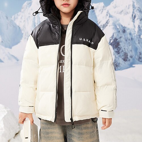 Kinder Mädchen Daunenjacke Daunenjacke Buchstabe Sport Tasche warm halten Winddicht Outdoor Mantel Oberbekleidung 5-12 Jahre Winter Schwarz Rosa Rote