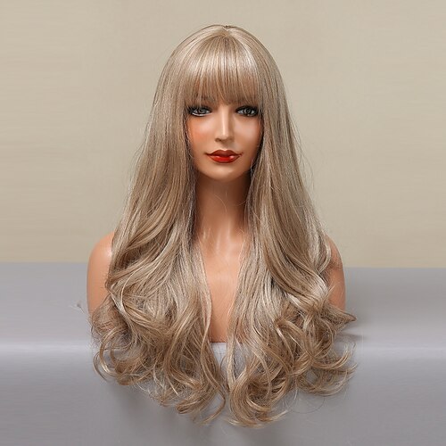 parrucche ondulate lunghe biondo castano ramato ombre con frangetta capelli naturali quotidiani per parrucche da festa di Natale da donna