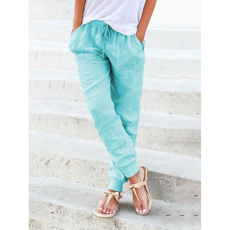 Women's Joggers Normal Faux Linen Plain Yellow Army Green Fashion Mid Waist Full Length Casual Weekend Autumn / Fall