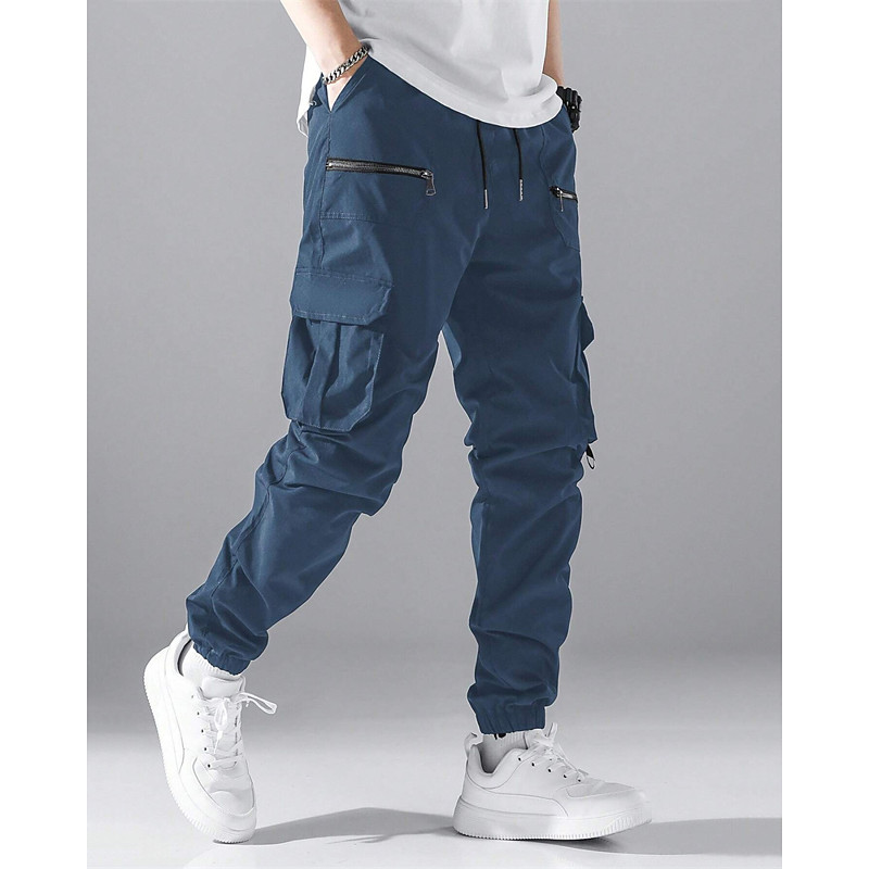 Men's Cargo Pants Joggers Trousers Drawstring Elastic Waist Multi Pocket Plain Wearable Outdoor Daily Camping Hiking Fashion Classic ArmyGreen Black