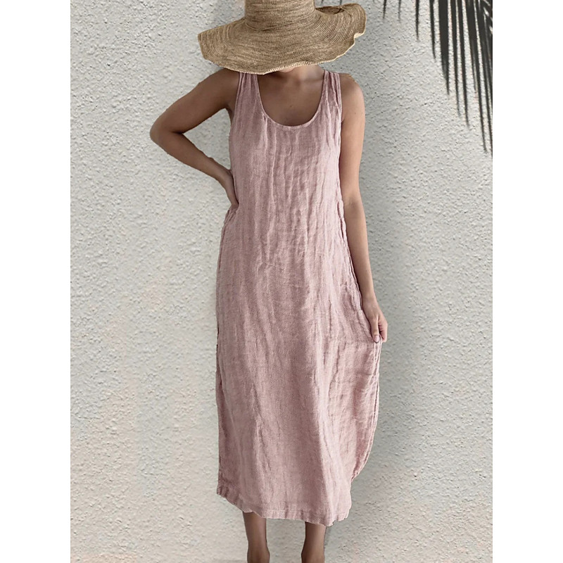 Women's Midi Dress Shift Dress Summer Dress Casual Daily Loose Fit Plain Sleeveless U Neck Black White Pink Summer