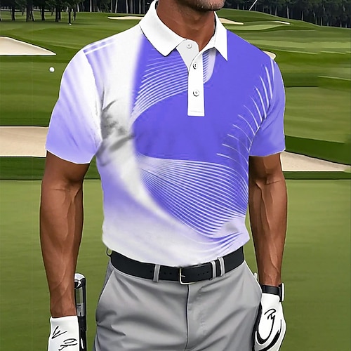 Herren Abstrakt Geometrisch Polo Kurzarm Polo-Shirts Revers Lässig Athleisure Alltagskleidung 3D-Druck Knöpfe Sommer Meerblau Purpur Dunkelgray