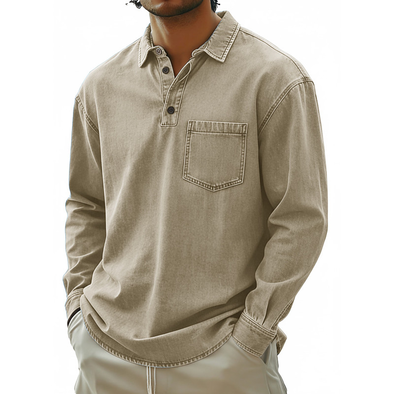 Men's Vintage Shirt Cotton Polo Shirt Business Casual Lapel Classic Long Sleeve Vintage Fashion Solid Color Plain Vintage Style Washed Fall Winter All Seasons Loose Fit Black Brown Pink Light Green