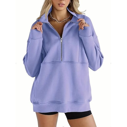 Per donna Felpe con cerniera Moda Casual Comodo Manica Lunga Mezza zip Top Regolari Casa Lavoro Casuale Patchwork Cerniera Tasca Nero Bianco Rosa Rosso Blu Autunno Inverno