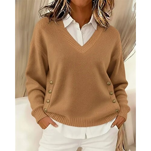 Per donna Felpa Maglione Elegante Moda Carino Tinta unica Scollo a V Bottoni Lavorato a maglia Manica Lunga Top Regolari Maglia All'aperto Casa Quotidiano Blu Rosa Autunno Inverno