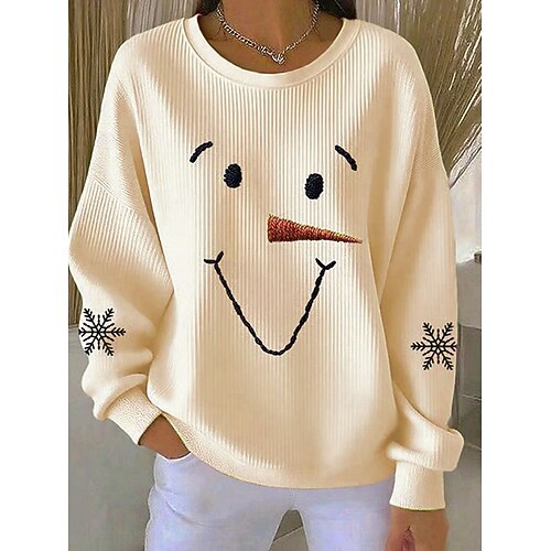 Felpa da donna di Natale Pullover Stampa grafica Brutta Calda Classica Casual Maniche lunghe Collo rotondo Top regolari Casa Strada Quotidiano Stampa Bianca Rosa Blu Autunno Inverno