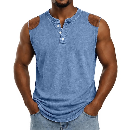 Per uomo Maglietta smanicata Camicia Demin Senza Maniche Henley Estate Primavera Semplice Moda Designer Sportivo Patchwork Tinto in capo Sbiadito Casuale Vacanza Streetwear Nero Verde chiaro Rosa